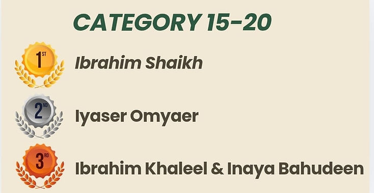 Open to youth ages 7–20, this competition offers a unique opportunity to deepen you connection with the Quran and showcase your recitation talent. A panel of qualified experts in Tajweed and fluency will judge the competition.